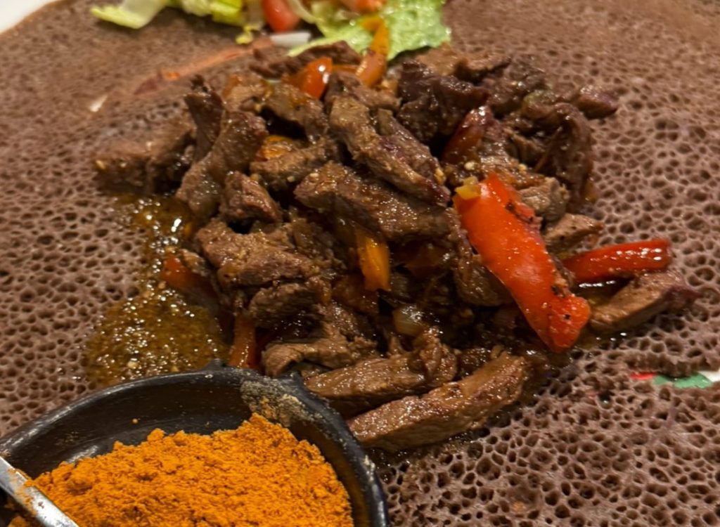 Inside is a quiet room with plenty of tables and a full bar. Samuel Awalom and Tsegrada Abera offer a broad Ethiopian menu including kibbe ($20), beef tartare with cardamom, soaked in clarified butter; zelzel-style beef tibs ($20) in red wine butter sauce, quanta firfur ($20), sauteed dried beef over injera, and a veggie platter ($17).