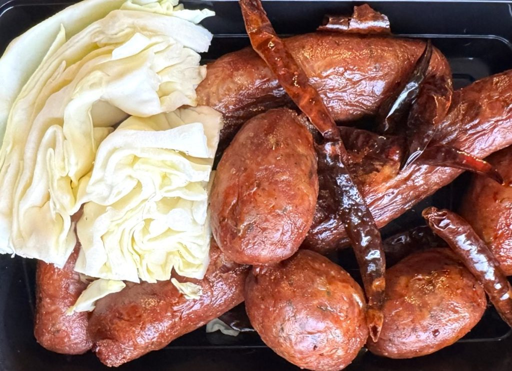 Daily offerings vary, but can include mohinga, catfish chowder served with rice noodles, long beans, and herbs; grilled Thai sausages with wedges of cabbage; spicy braised fish steaks; and fried chicken.