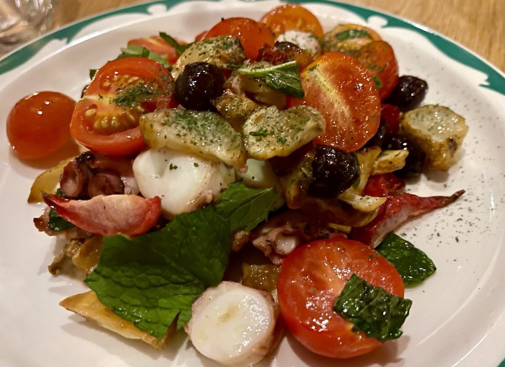 Pastas include culurgiones ($25), Sardinian-style braided stuffed dumplings with tomato passata, and pansotti ($28), Ligurian ravioli stuffed with squash, in brown butter and burgundy truffle.