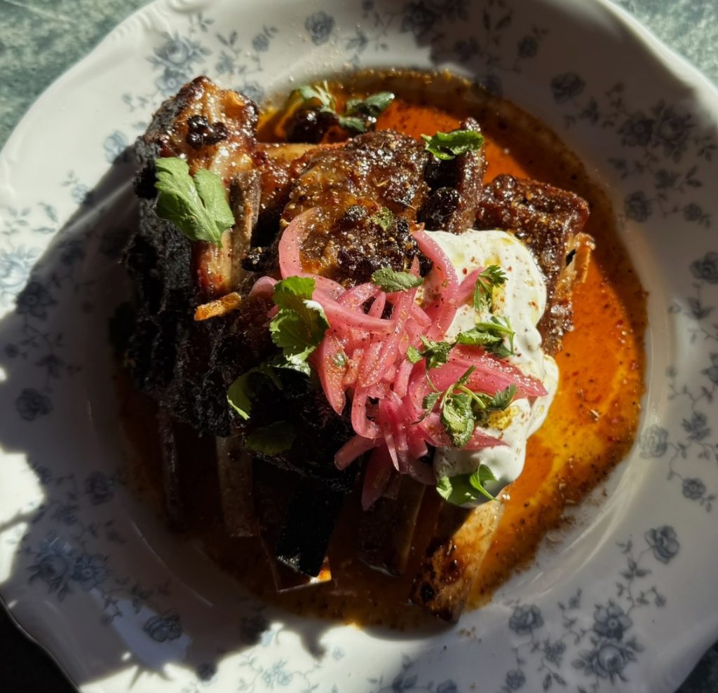 Lamb ribs ($42) with bomba rice and garlic yogurt, or sea bream ($44) with Calabrian chile breadcrumbs, fennel and arugula salad are among coal oven entrees.