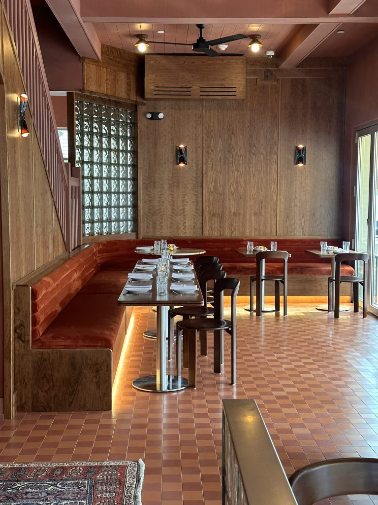 Mira means “look,” and Dujanovich’s transformation of the space into a sun-soaked seaside villa makes it easy to obey. Terracotta walls, wood paneling, and earth tones help create a chill space to focus on the pleasures of the table. Custom banquettes, lowkey lighting and expanses of tile have redefined the former Pano’s.