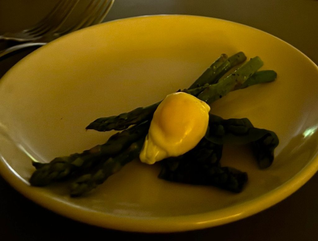 Poached quail egg with asparagus