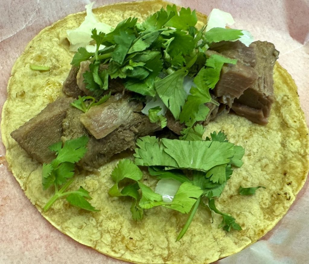 La Divina Tacos: lengua, tongue ($5), for the flavor of rich pot roast.