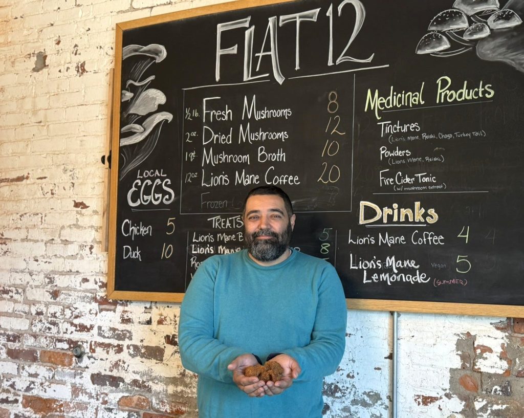 The fertile soil of Robbie Giannada’s mind has brought Flat 12 Mushrooms from a backyard experiment to a company whose gross receipts neared a half million dollars last year.