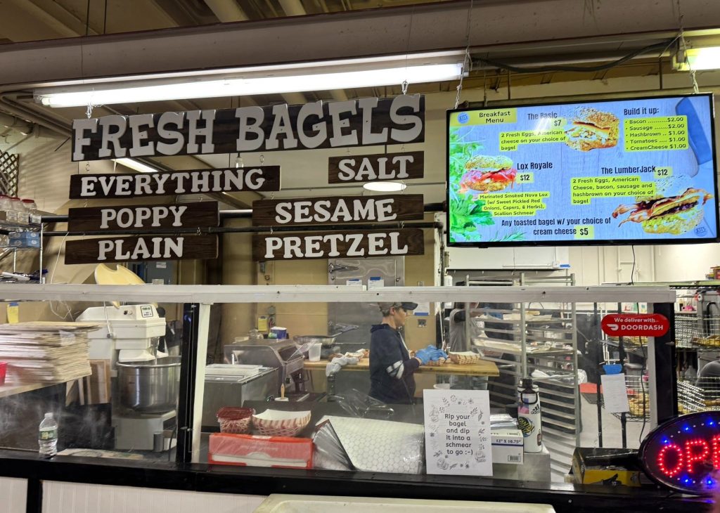 New Broadway Market offerings include Big-Apple-style bagels from Jett’s Bagels, located in the northeast corner of the space. Dejon Hamann and Jillian Majka’s business started as Aurora Bagels, a stand in front of their house. Hamann renamed it after his son Jett, who died recently.