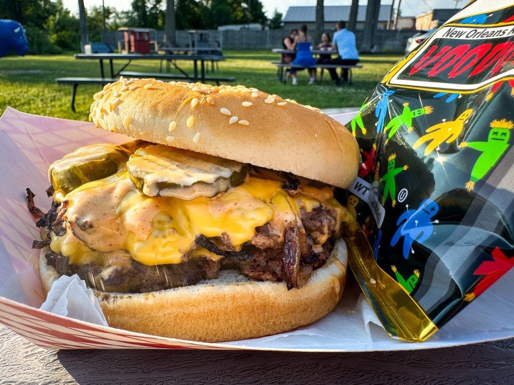 After getting a whiff of barbecue cooking, he ended up switching his outlet for creative expression and people-pleasing. Now you can get his Tennessee Smokehouse ribs, pulled pork, and rubbed up smashburgers for lunch on Saturdays at Half Baked Cafe in Lockport.