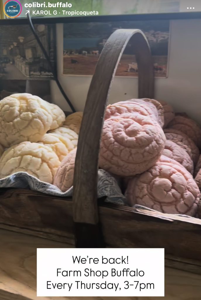On the bright side, conchas are a Buffalo thing now. Thursdays around 3 p.m., Emily Gonzalez of Colibri Panaderia brings her conchas to Farm Shop, at 235 B Lexington Ave. (door around the corner on Ashland). (Here’s why she bakes conchas.)